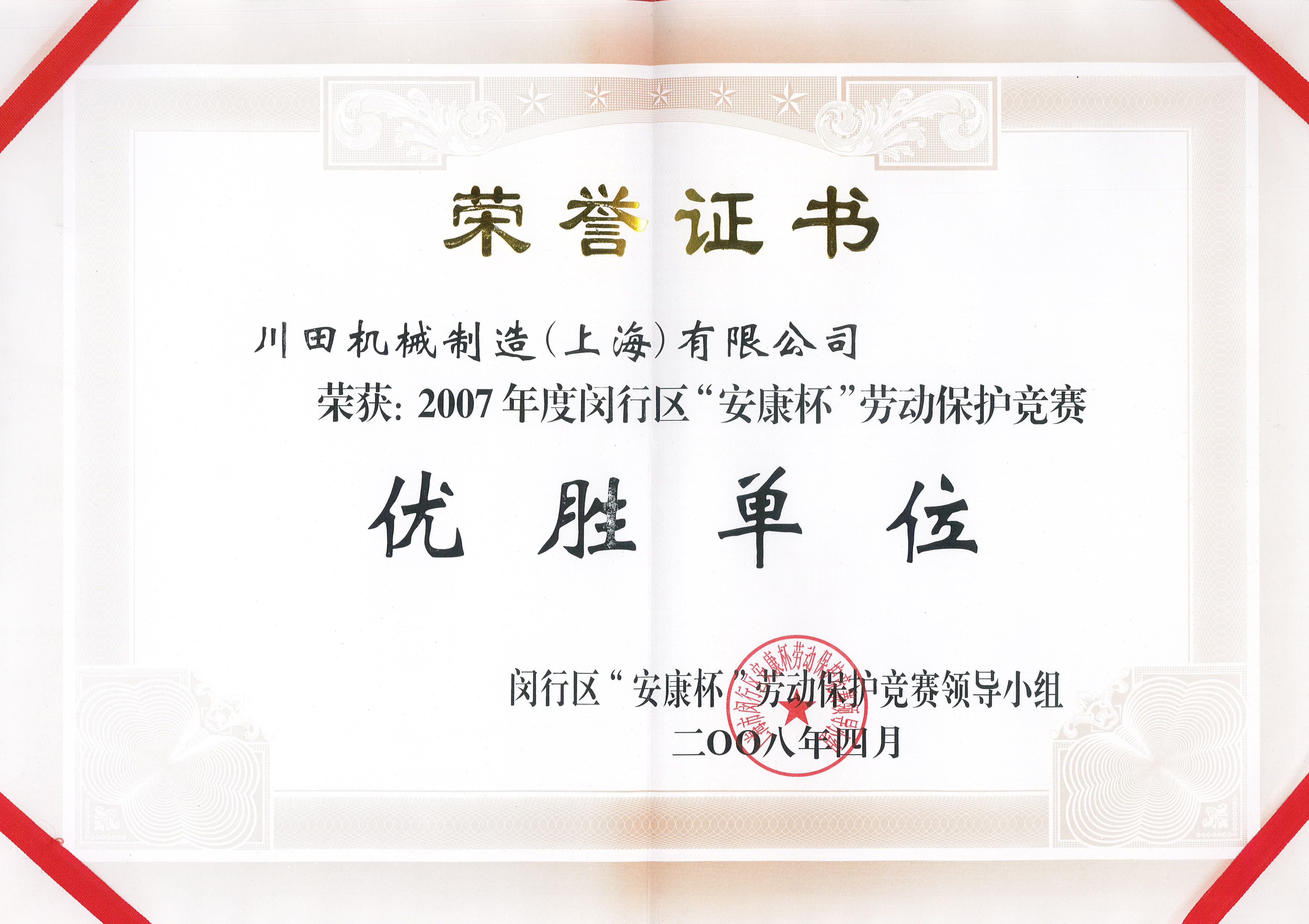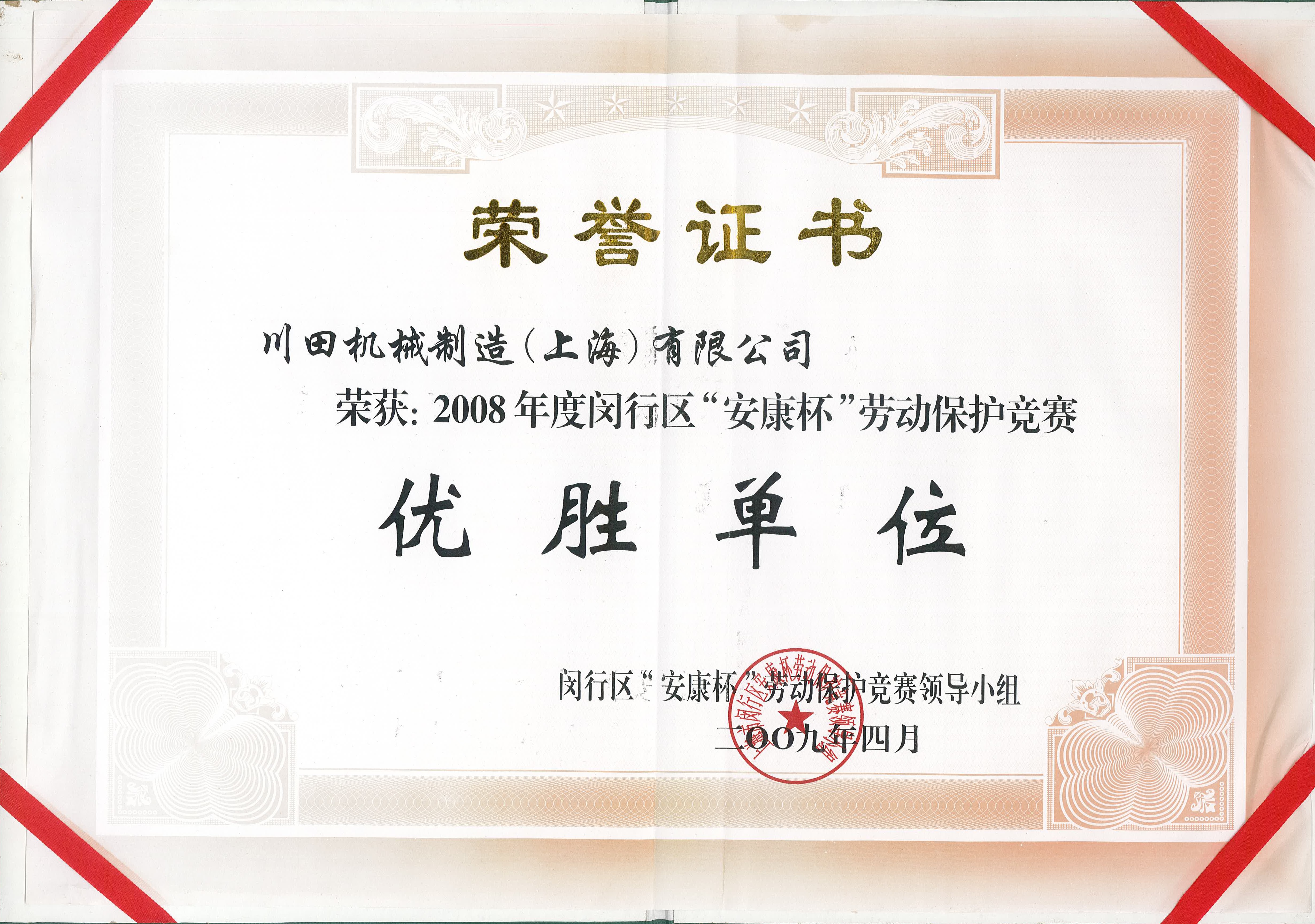2008 閔行區(qū)安康杯勞動保護競賽優(yōu)勝單位