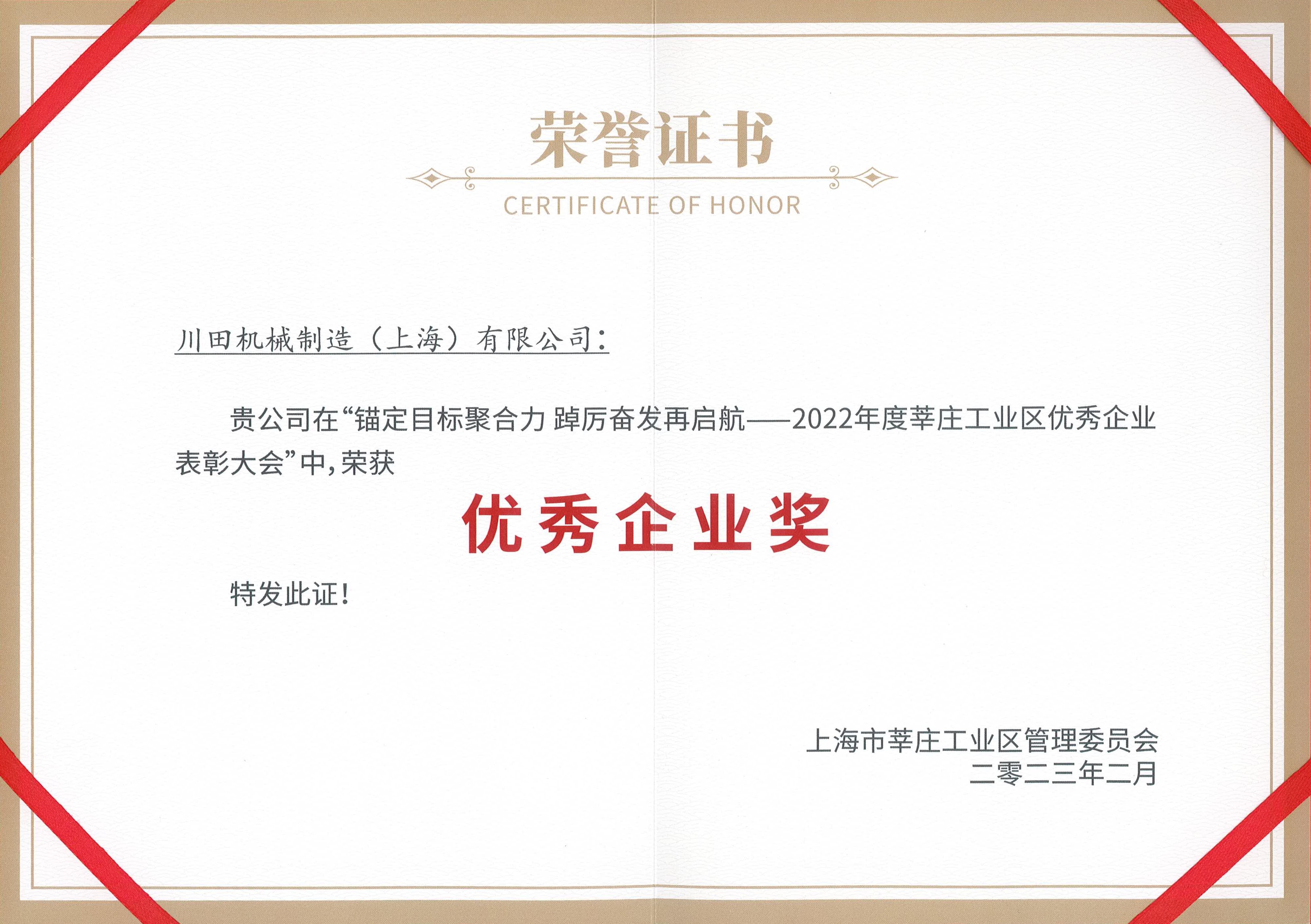 2022年度莘莊工業(yè)區(qū)優(yōu)秀企業(yè)賞