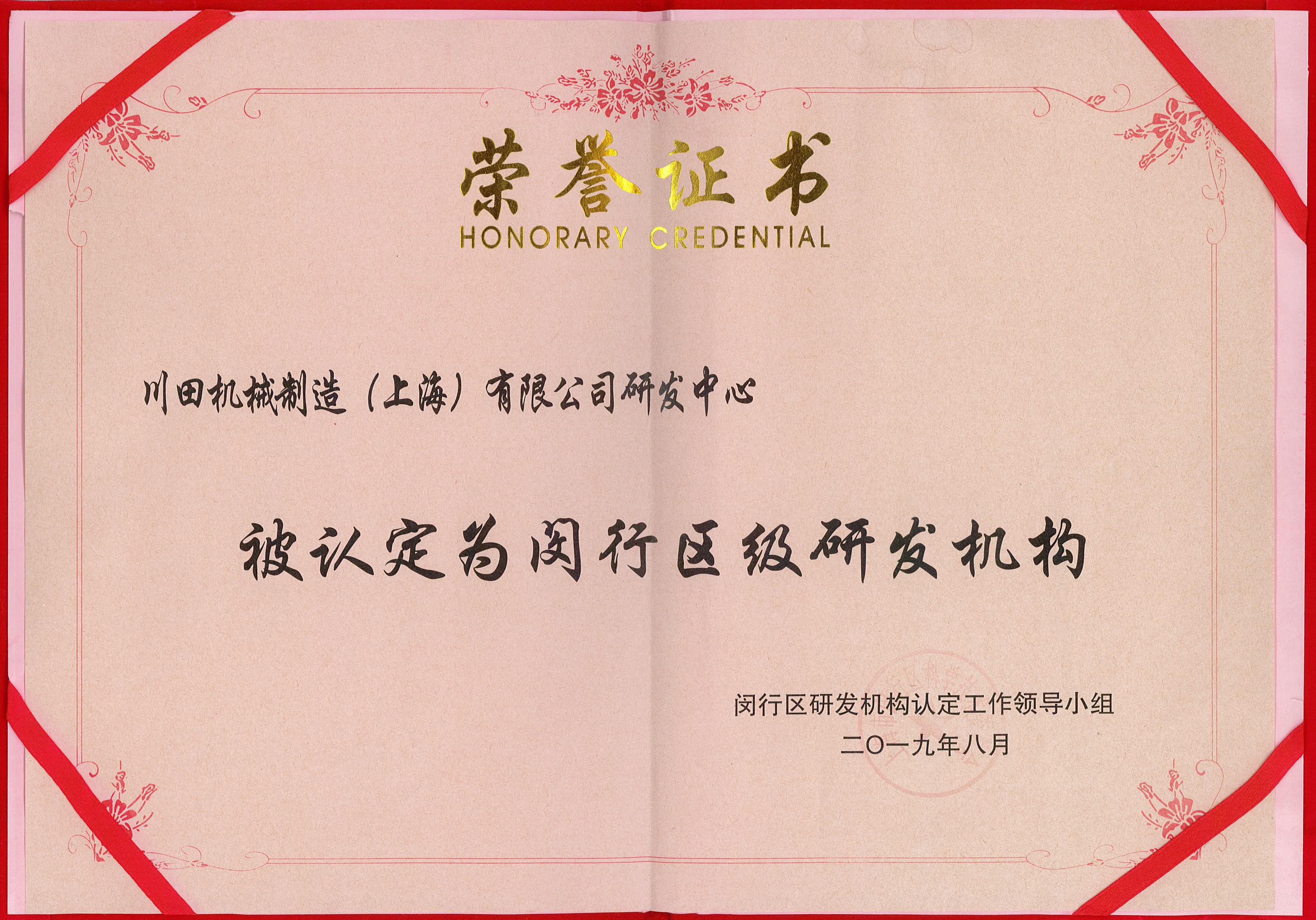 2021年度莘莊工業(yè)區(qū)優(yōu)秀企業(yè)証書