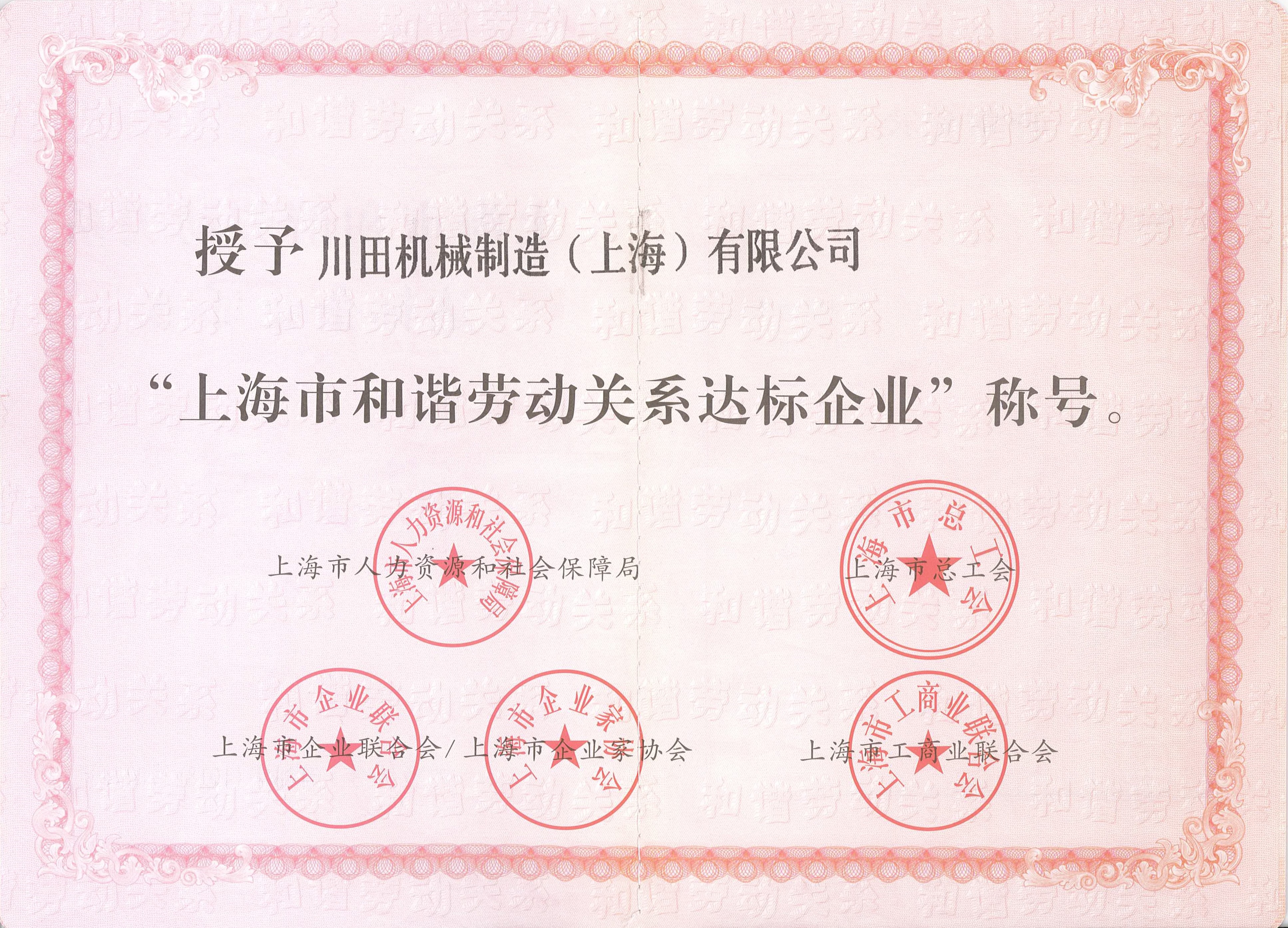 2018年度上海市労務(wù)関係安定企業(yè)証書